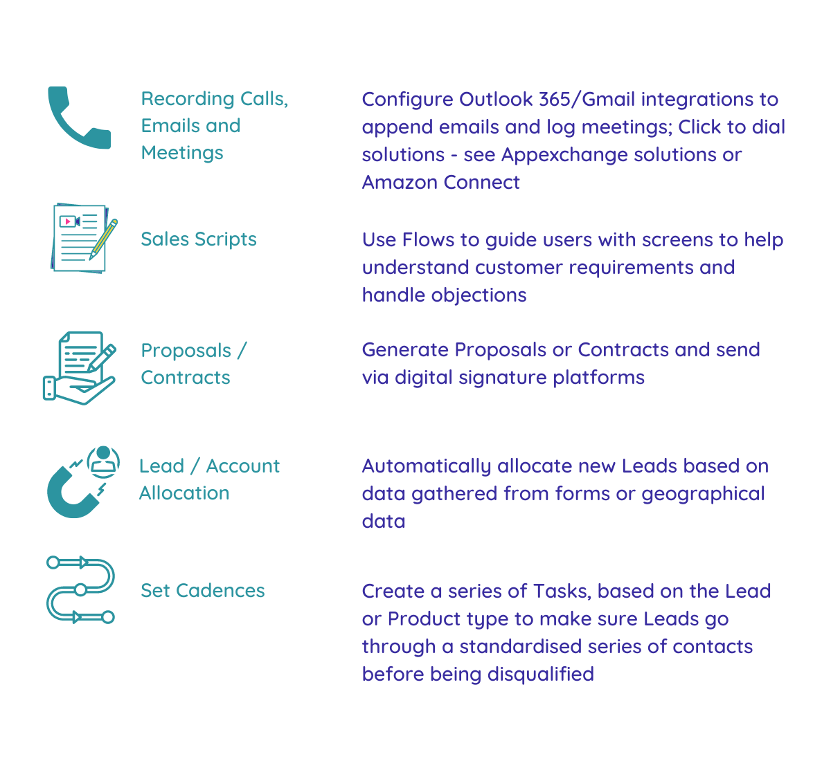 There is huge flexibility when looking at automation and the aim is to pursue the inefficiencies that you have in your current process. Here are some common examples of inefficiency and fixes that will help 'juice' the process and win back more time for sales activity: